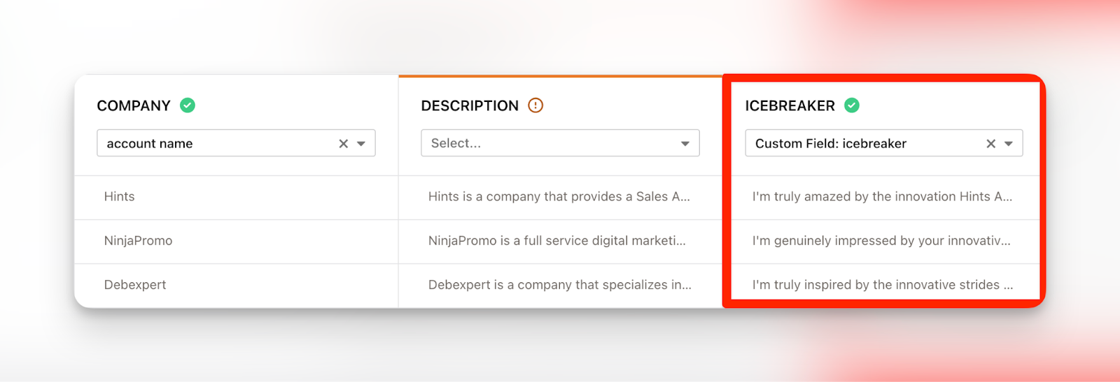 Теперь у нас есть электронные адреса, содержащие полезную информацию, такую как имена и описания компаний. Далее мы создадим персонализированные приветствия, чтобы в дальнейшем мы могли приступить к рассылке и сразу же установить личный контакт.