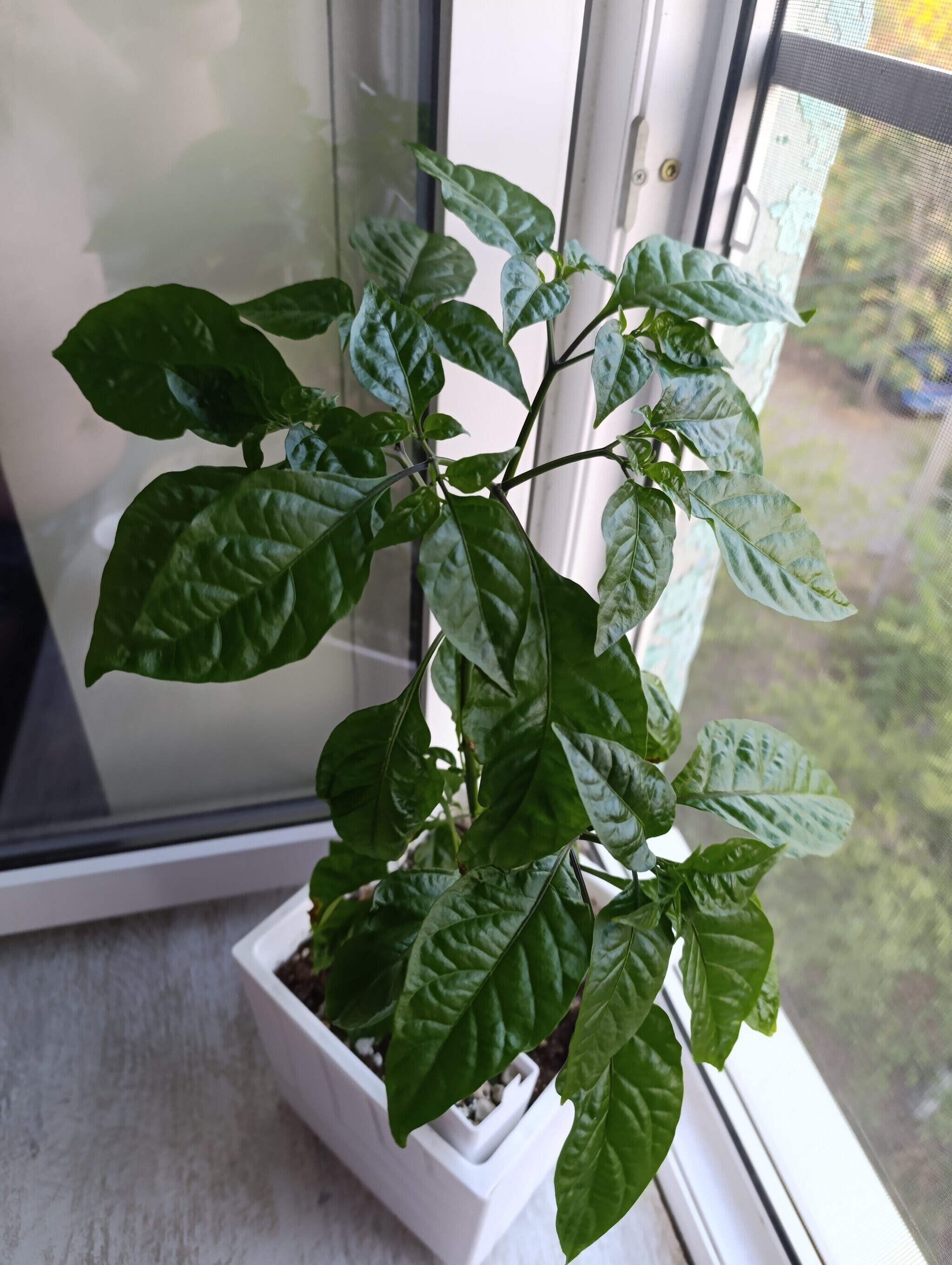 Перцы растут потихоньку. Первые