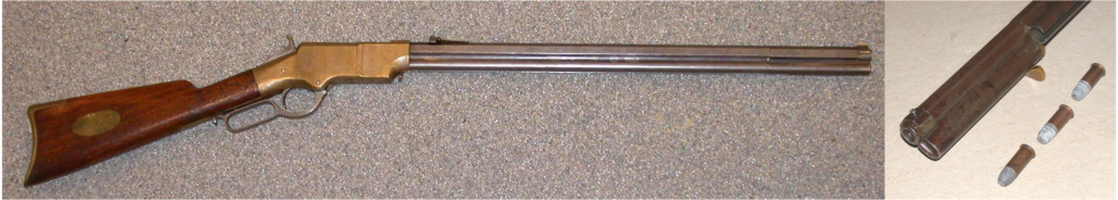 Винтовка Генри, справа показан магазин в состоянии зарядки.