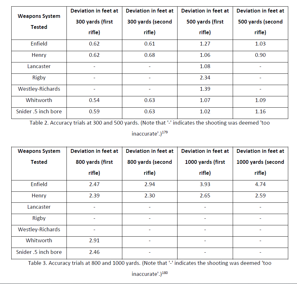 Конкурс показывает, что армейские стандартные дистанции стрельбы того времени не превышали 500 ярдов, стрельба на 1000 ярдов (914 м) из стандартной солдатской винтовки была исключительной, без особой надежды на попадание.
