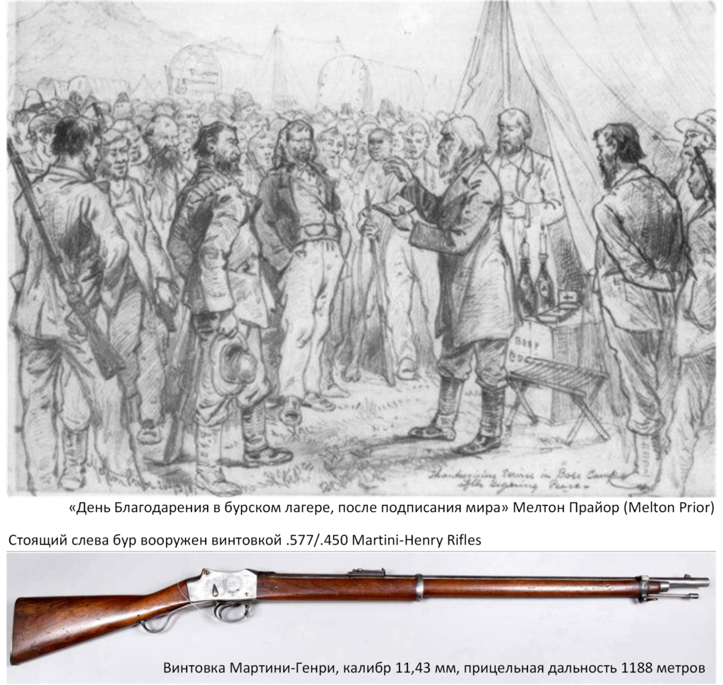 Стоит отметить и отсутствие с обеих сторон оптических прицелов. Я так и не смог найти упоминание об их использовании ни у одной из сторон. Со стороны англичан их отсутствие объясняется консервативностью имперской армии. С бурами сложнее, на мой взгляд, здесь роль играла общая консервативность общества и отсутствие необходимости. Многие авторы отмечают высокую остроту зрения и исключительную меткость буров, выработанную с детства путем долгих тренировок. А оптический прицел вещь хрупкая, деды ее не использовали, да и намекает она на слабое зрение и плохую меткость владельца.