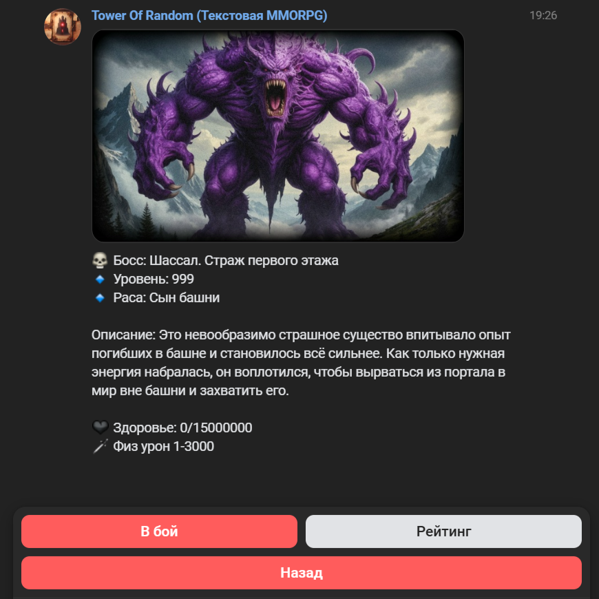 ю вами аватарку.Рейды простые — по понедельникам запускаются боссы, и их все бьют. Это соло-бои, у босса просто общая полоска хп на сервер. После убийства всем микроплюшки. Скоро будет переработан в полноценный пати-режим.