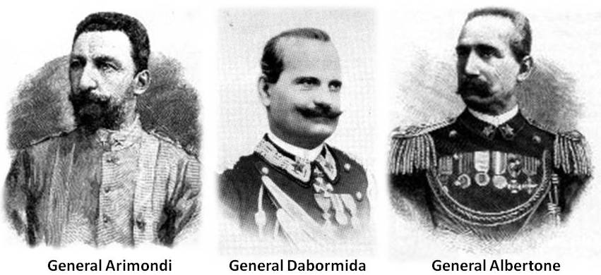 Итальянцы наступали четырьмя отдельными колоннами под началом генералов Аримонди (недавнего беглеца от раса Маконнена), Дабормида (известного храбреца), Альбертоне (ведшего туземные части) и Эллена (командовавшего резервом, с которым шел и осторожный командующий Баратьери).