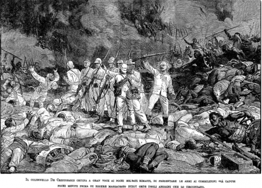 Отдельные группы итальянских солдат, окруженных на поле при Адуа продолжали отчаянное сопротивление до самого вечера... В конечном итоге абиссинцы уничтожили или принудили к сдаче их все.