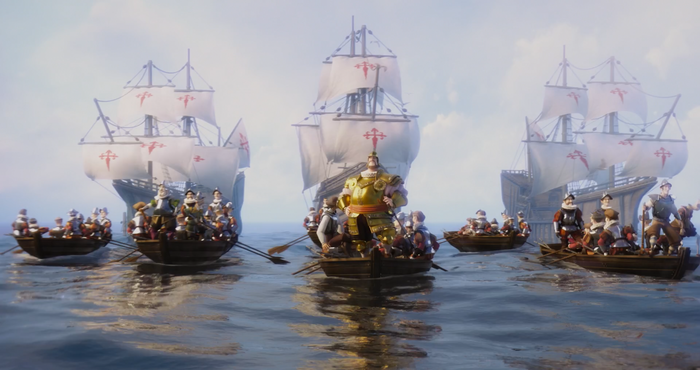 И вот, 20 сентября 1519 года моя мечта воплотилась в жизнь! Я отправился к Островам Пряностей на запад. Но и тут случился досадный конфликт. Мои испанские коллеги потребовали маршрут. Конечно же я им ничего не сказал, кроме как «Ваша обязанность следовать днем за моим флагом, а ночью за моим фонарем». Это всё что им нужно знать. Иначе мало ли чего могут учудить. Грохнут ещё. Море часто штормит. И оно хорошо хранит секреты.
