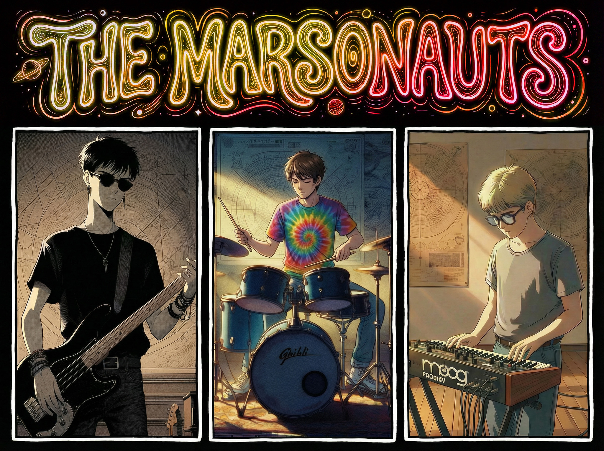 Они себя назвали "Марсонавты"! У них есть синтезатор! Настоящий Moog! А вот гитары нет. Ну, сегодня есть!