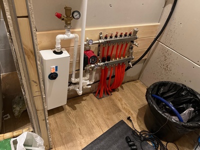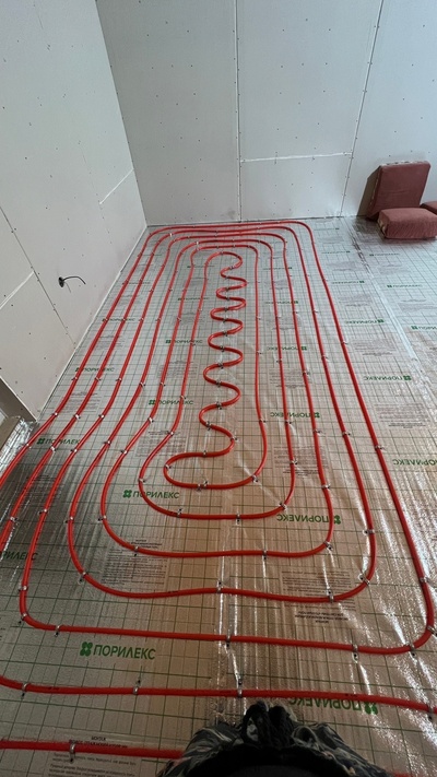 Водяной теплый пол, пока еще с ним до конца не разобрался, в доме слишком жарко днем до 30 градусов бывает)