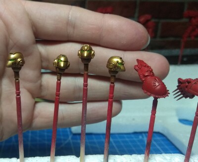 Ты ассалт сквад какой-то красишь? На Ютубе есть видео "6 ошибок при покраске миниатюр". Глянь его. Там большое внимание уделяется тому, что краску надо разбавлять. Лучше 2-3 полупрозрачных слоя наложить, чем 1 толстый. И всегда кисть промакивай, очищай. Пигмент имеет свойство гранулами оставаться на миньке, потом это дело очень плохо смотрится.