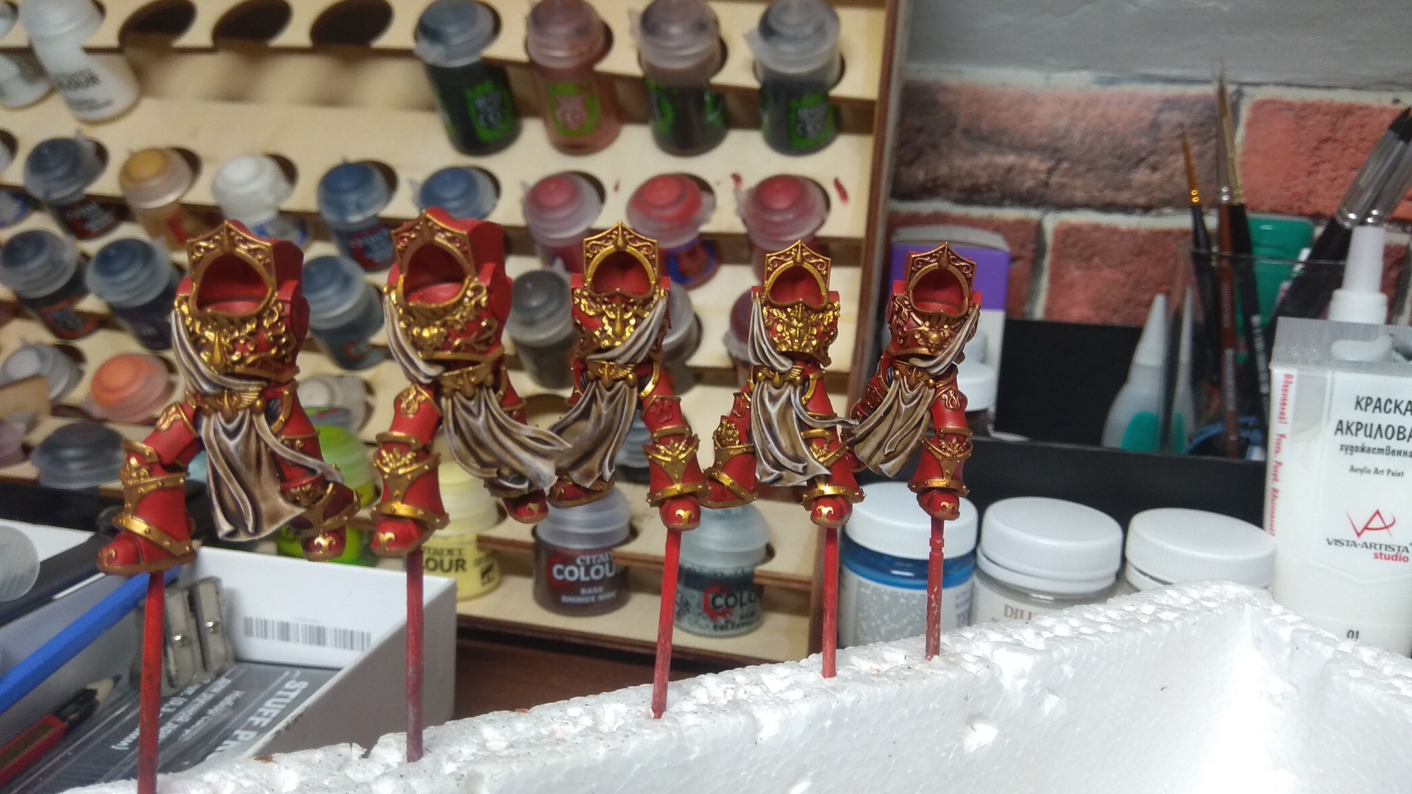 С разведением краски - очень удобно разводить на влажной палитре. Металлики развожу водкой. По ощущениям краска ложится тоньше. Да и много где видел, что металлики разбавляют спиртом или водкой. Для драйбраша понравилось использовать какую то пухлую макияжную кисть.
