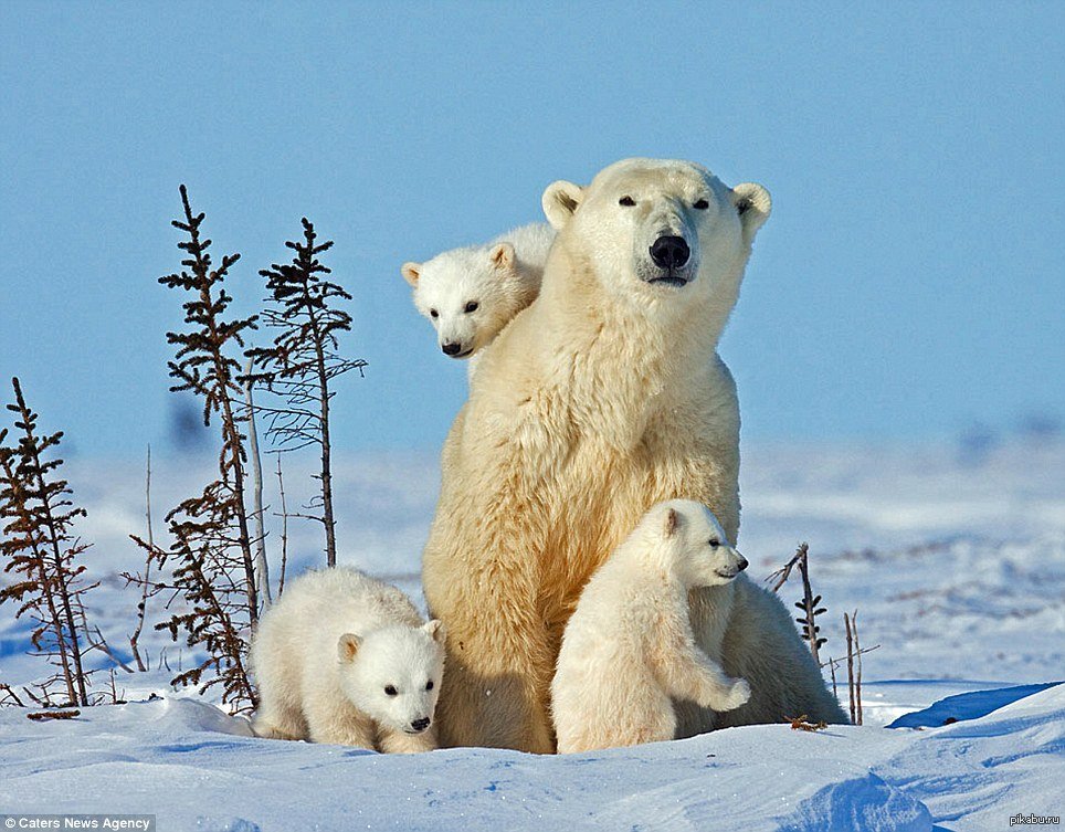 16 luckyolya Первая прогулка белых медвежат-тройняшек 11 лет назад Медвежата-тройняшки в дикой природе – это большая редкость. Природа Белый медведь Редкость