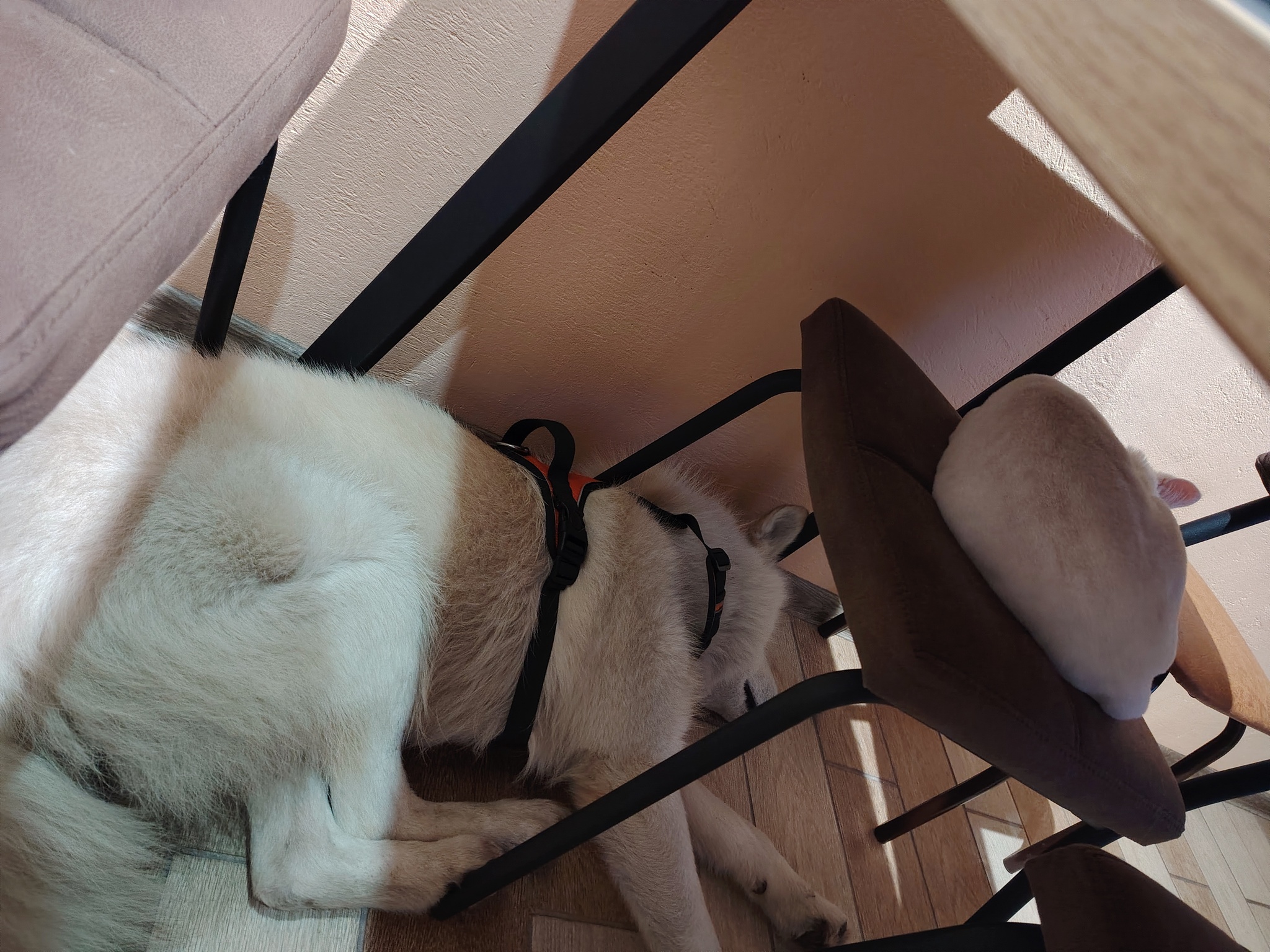 Петрович иногда показывает, что ему надоело сидеть в четырех стенах. Когда мы гуляем по улице, то он скулит и не хочет идти домой. Хотя если мы гуляем прям долго, то он также скулит и смотрит по сторонам, не понимая, почему мы не идём домой. А ещё он скулит, когда видит других собак. Он хочет подойти знакомится, но я не рискую. Плюс все боятся, что Петрович что-то сделает другим собакам.