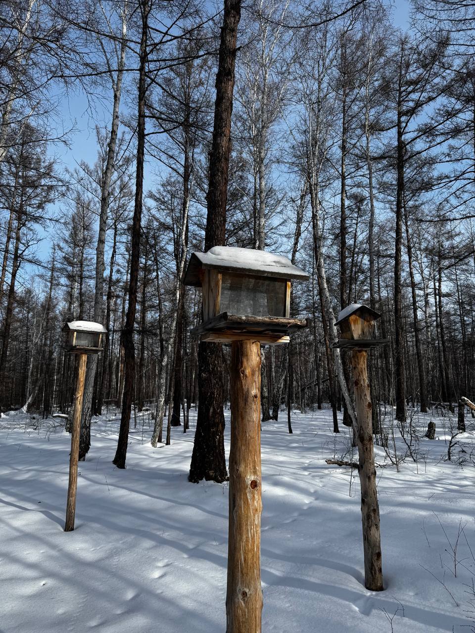 Множество деревянных указателей, заботливо привязанных к деревьям тонким канатом, не дадут заплутать даже теряющимся «в трех соснах». Есть поляна с кормушками для птиц, правда для закладки пропитания нужно воспользоваться лестницей. Дальше ждет поляна Викингов, которую видите на одном из фото, на развилке стоит коновязь, или по бурятски «Сэргэ».
