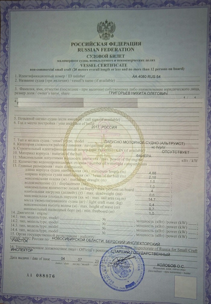 Ещё удалось зарегистрировать лодку в ГИМС, процедура сложная и не всем удается, так что рад. Если кому интересно - в комментариях распишу весь процесс.