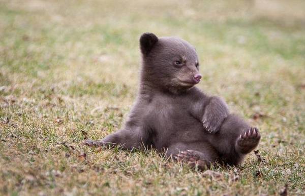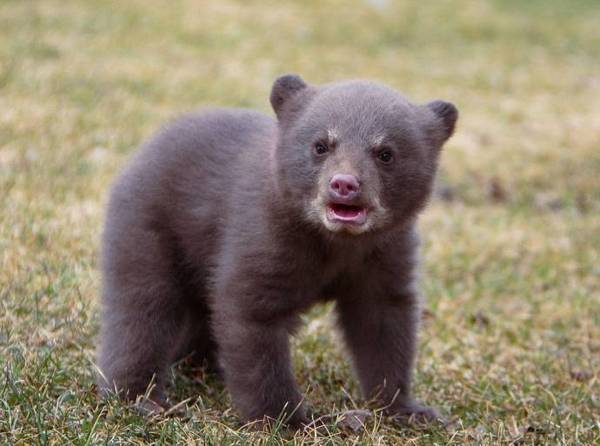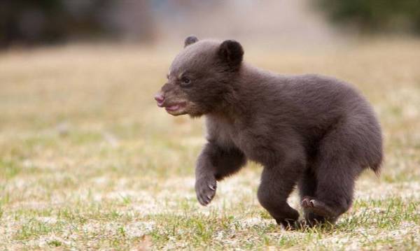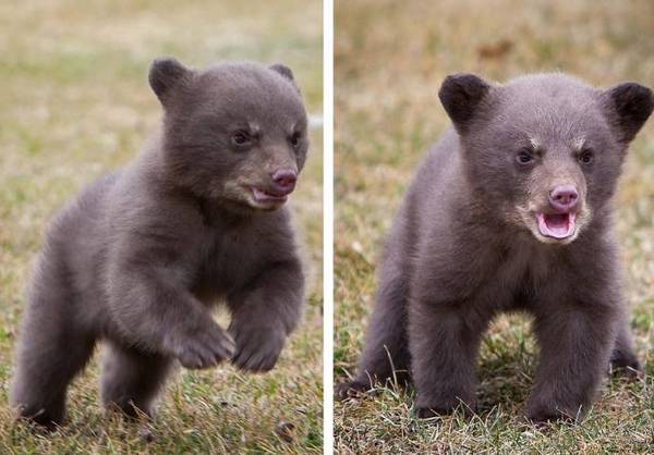 Медвежонок не ожидал такой "подлости" и сначала просто застыл, а потом разнюхал и кинулся со всех ног наутек.