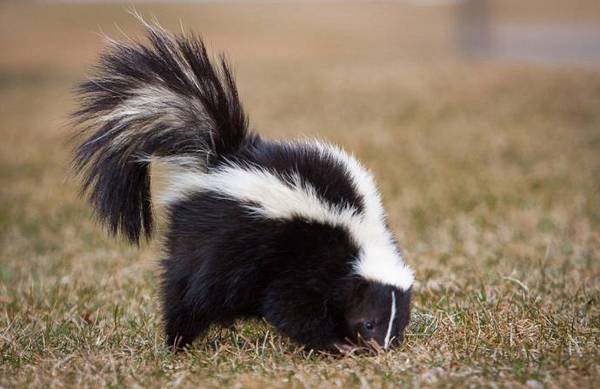 Медвежонок, как казалось, лишь искал себе партнера для игр, но скунс не оценил его приставаний и быстро выпустил в мишку свою знаменитую вонючую струю.