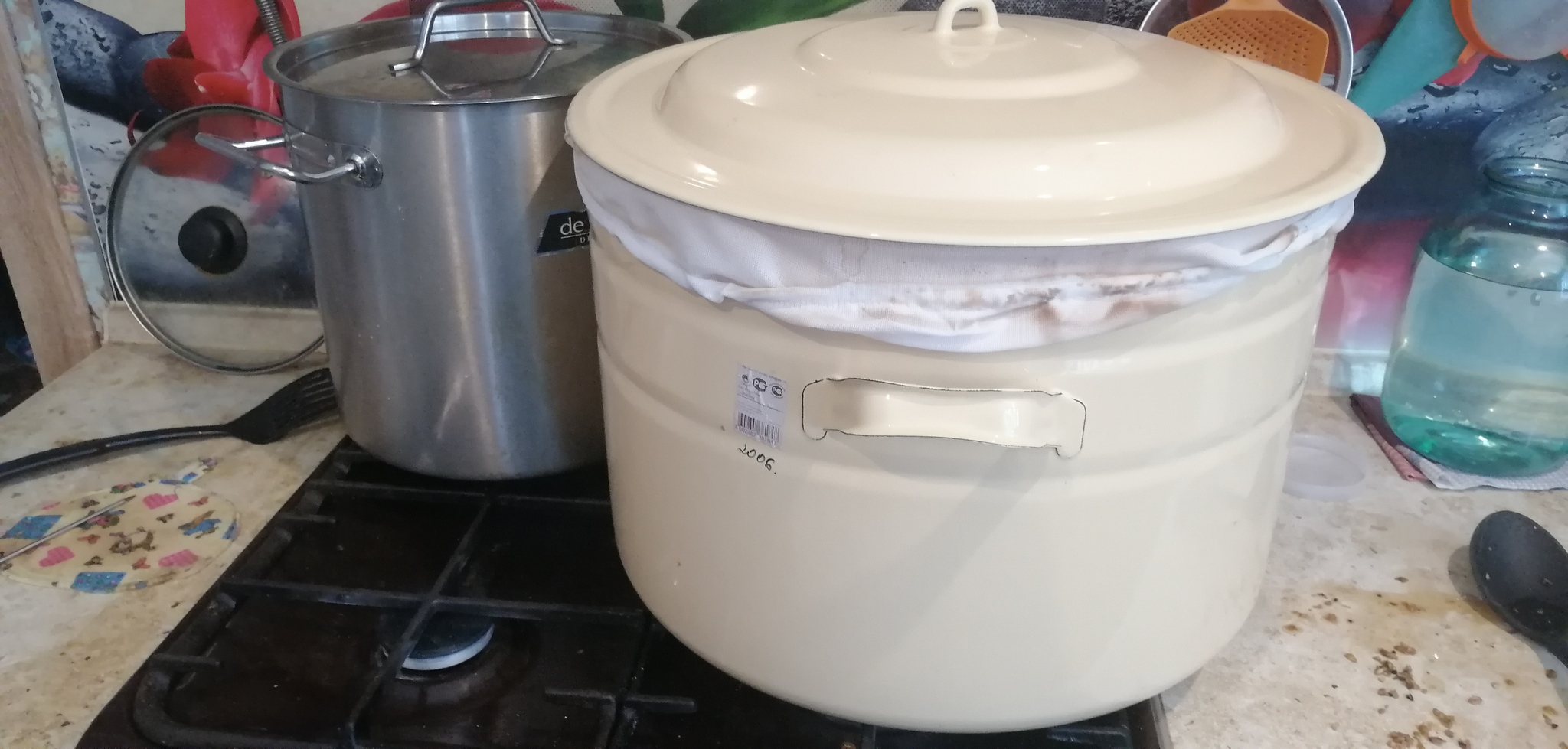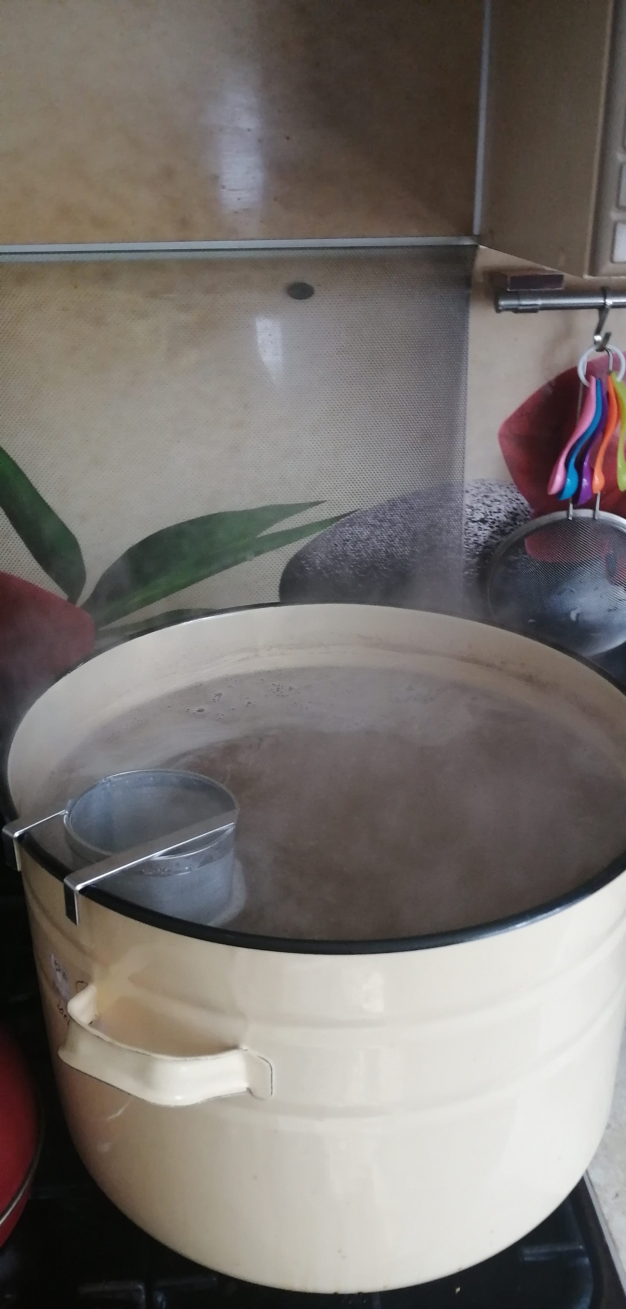 И так, перед тем как начать добить солод,я налил 24 литра воды в кастрюлю и поставил греть до 52 градусов!