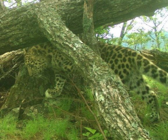 На этих снимках фотоловушки – самка дальневосточного леопарда под номером Leo 138F в сопровождении своего котёнка.