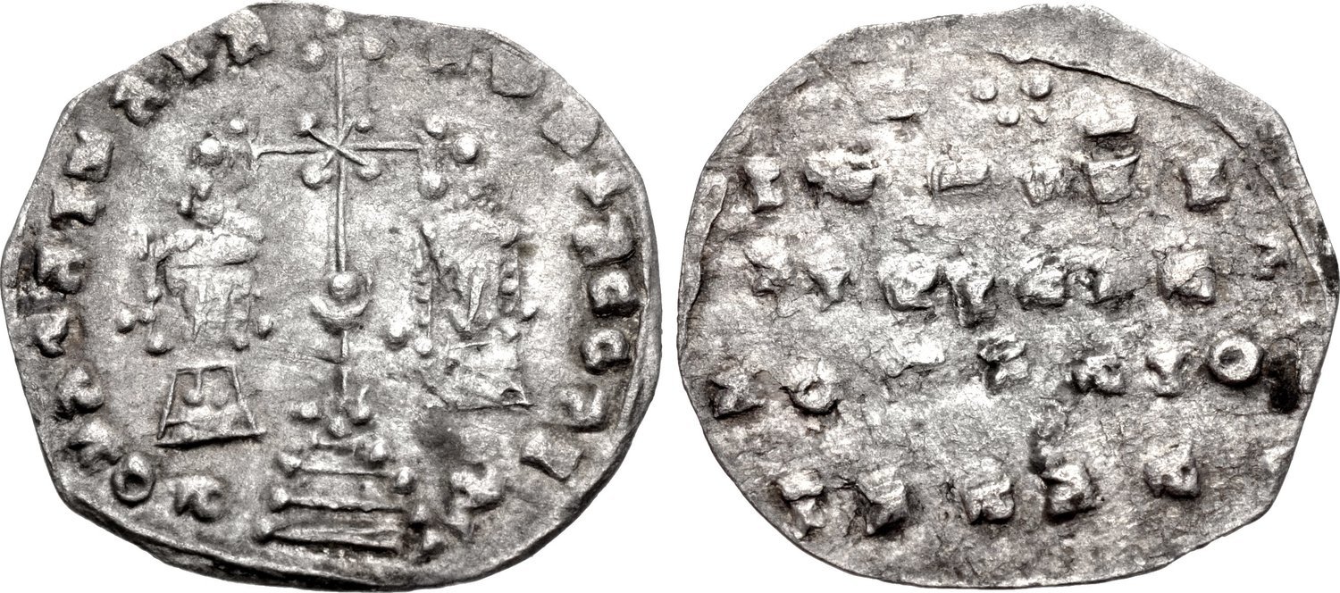 Фото 5-6 - сребреник князя Владимира, первый тип по образцу византийских монет, найден предположительно в 2011-2012 году на территории Украины, описан у специализированной литературе.