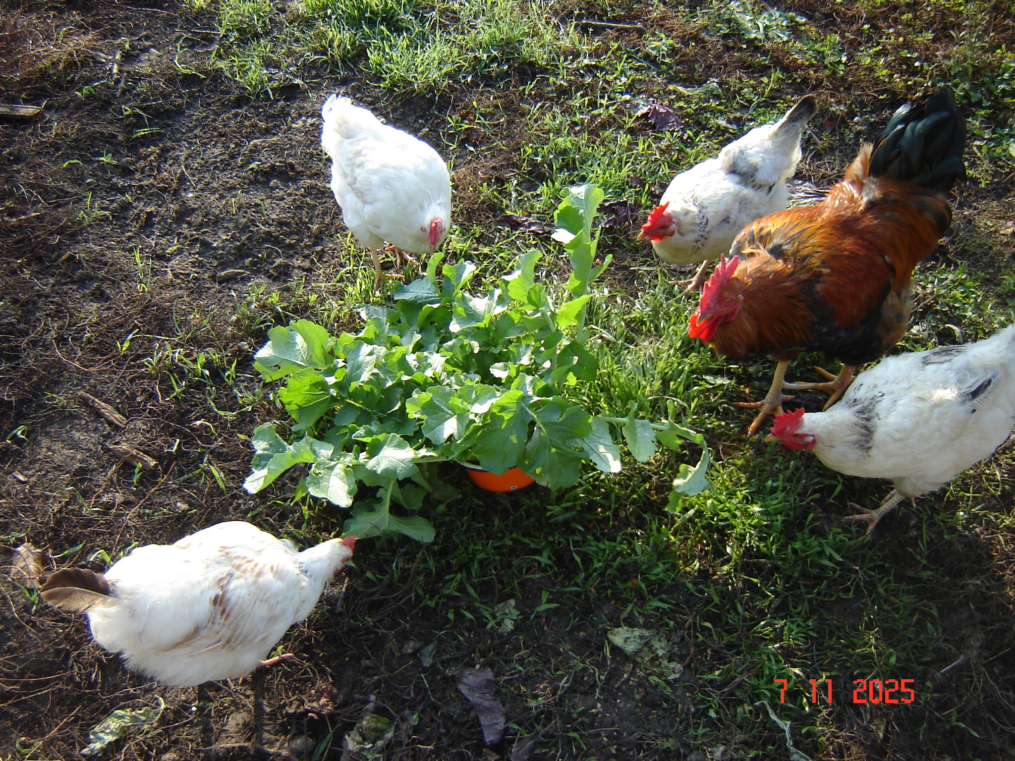 Куры обожают листья дайкона.