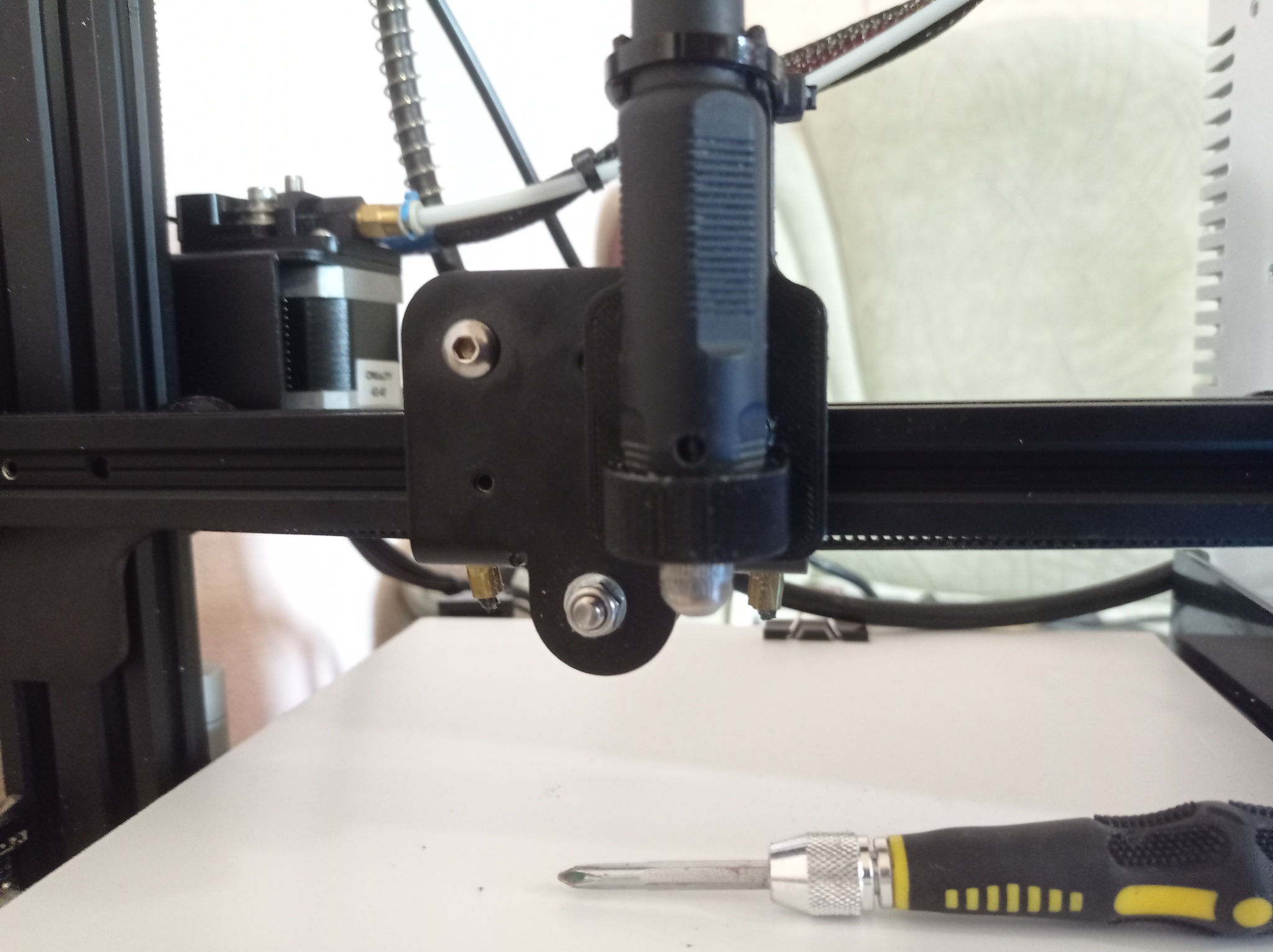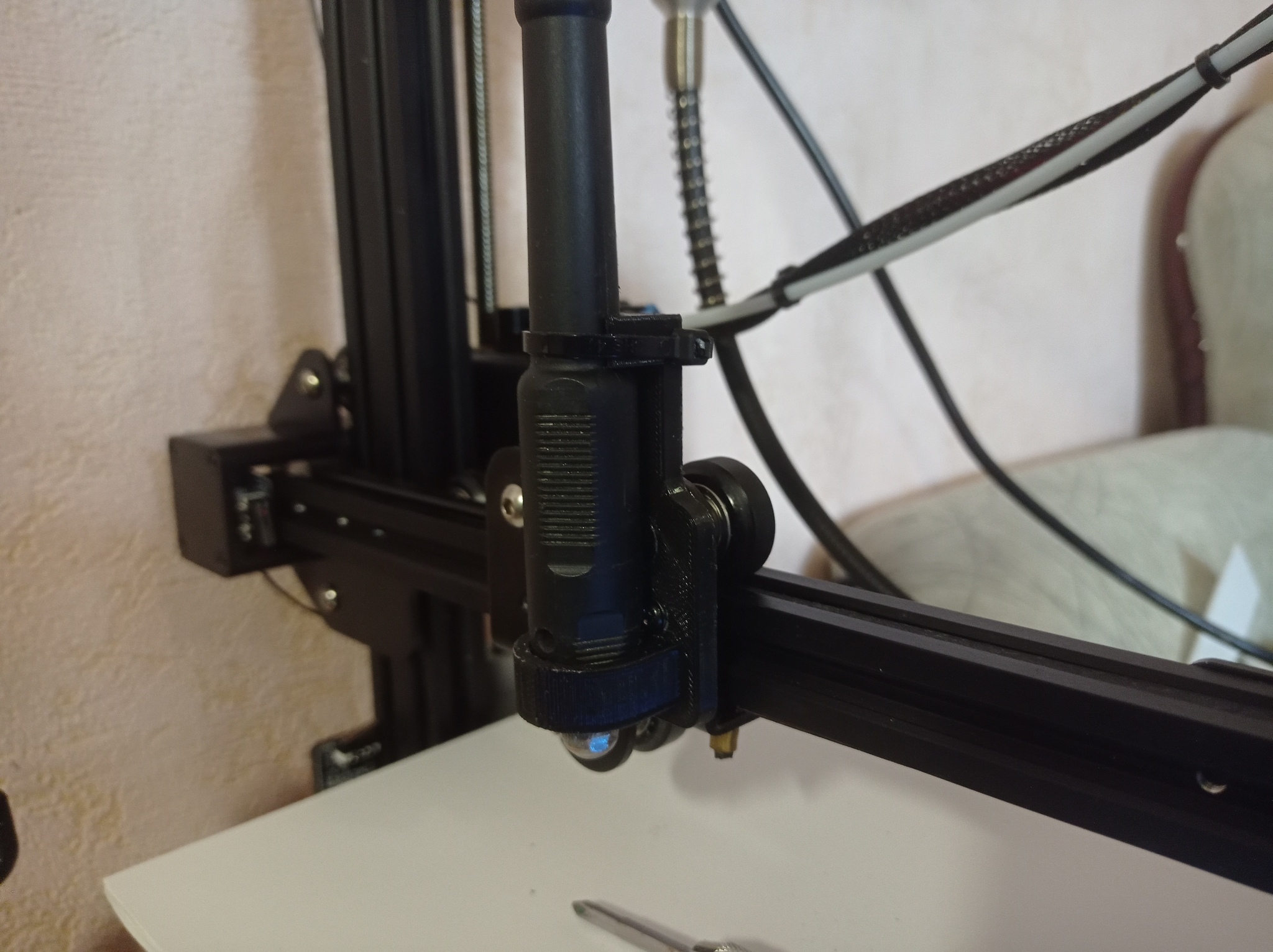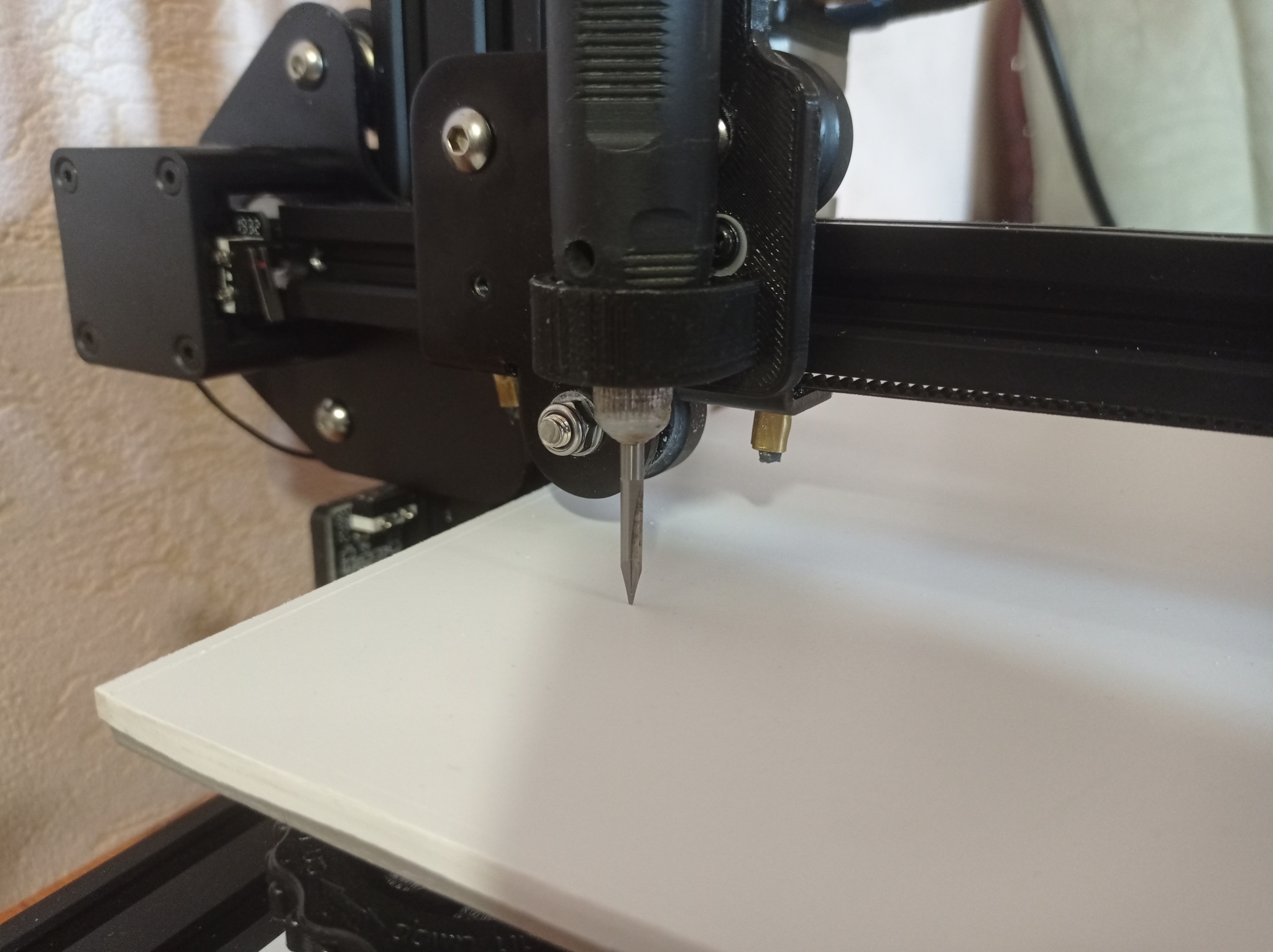 И так, мои размышления, если принтер может ходить по xyz и печатать, что то ему мешает двигать фрезу и убирать материал? Правильно отсутсвие двигателя, и патрона который бы приводил бы в работу эту самую фрезу. Посмотрел я на принтер, посмотрел я на гравер, который лениво лежит с боку и осознал, вот же она задачка моей мечты. Надо примастырить гибкий рукав от гравера к станку, и сделать gcode. Сказано - сделано.