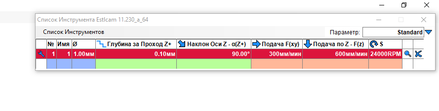 Так как я не очень разбираюсь в матералах и режимах обработки я выбрал такие параметры для акрила