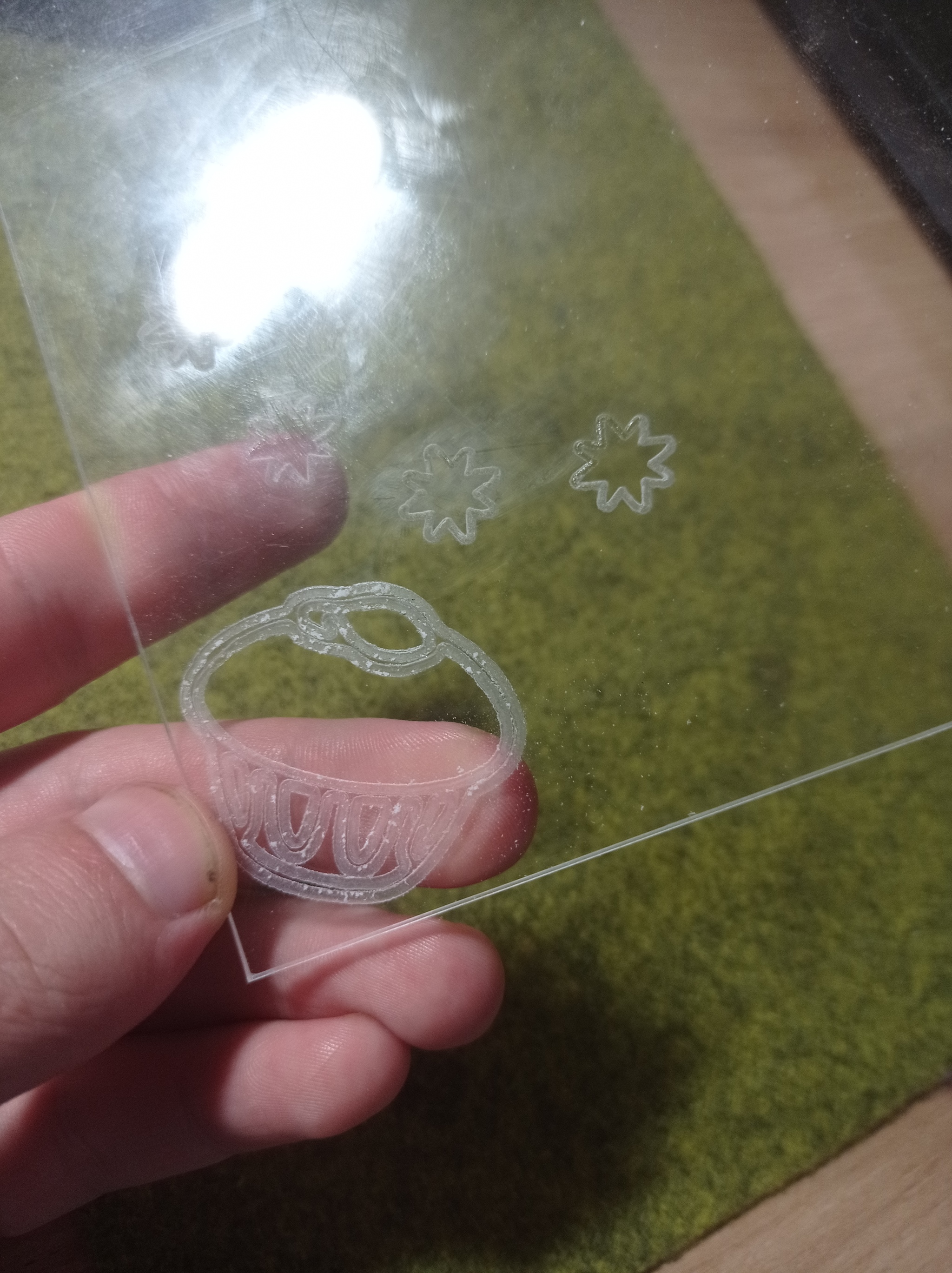 Скука - это дело противное и липкое. В такие моменты следовало бы почитать учебник русского языка и подучить граматику, но это еще более скучно. Собственно немного попыток в фрезеровку оргстекла.(акрила)