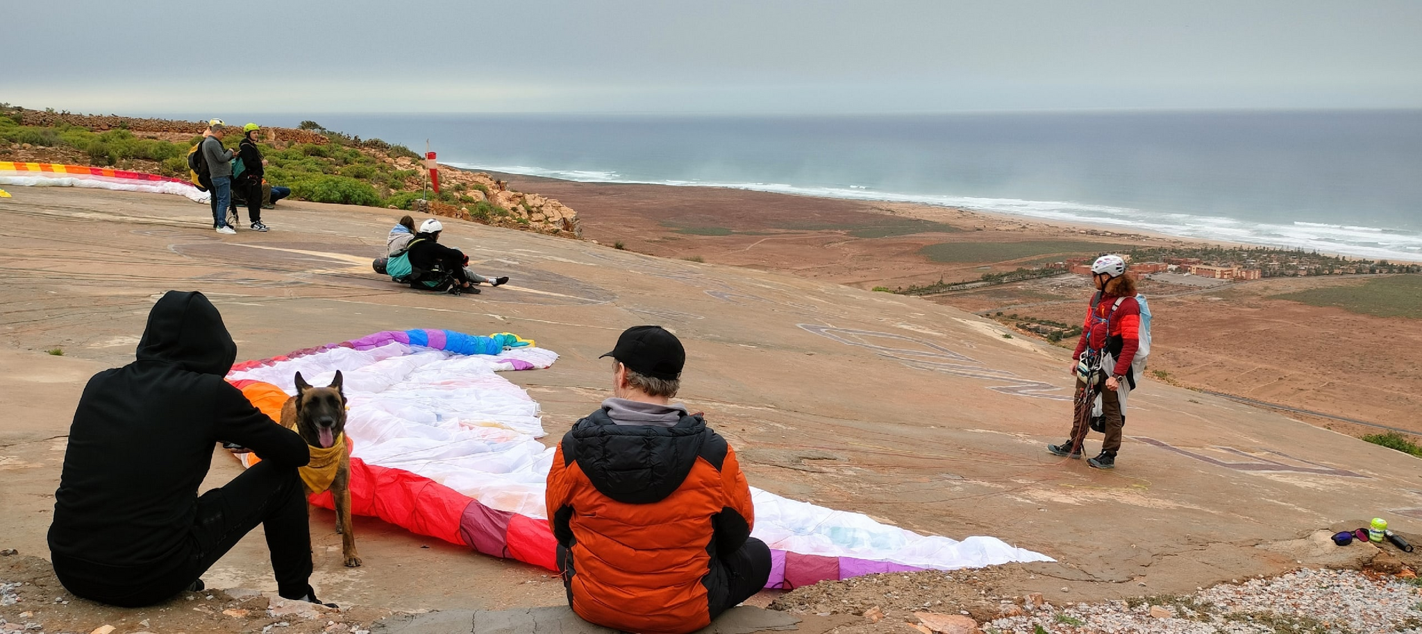 На стартовой площадке уже стояла-сидела группа французов. Они активно занимались паравейтингом (para waiting - ожидание полёта), разложили оборудование и тщетно надеялись.