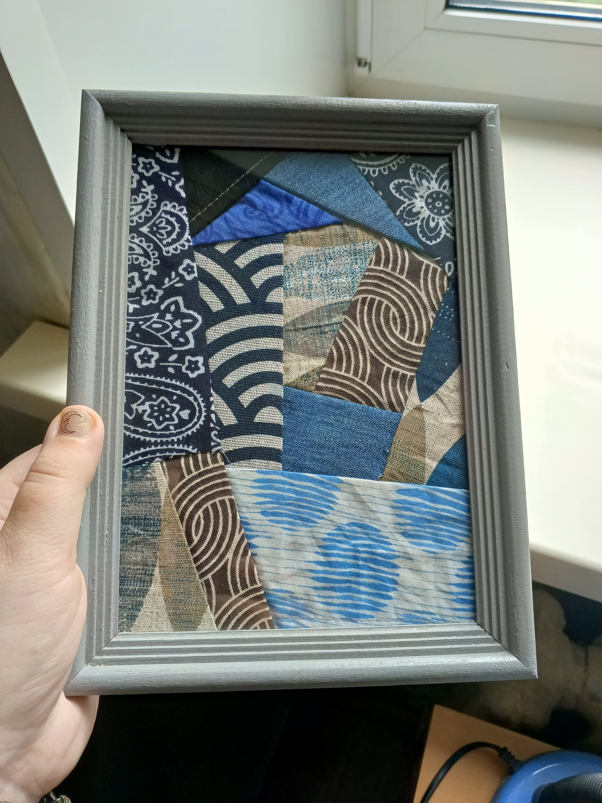 Люблю ролики Геллы Чары, она часто практикует такую технику пэчворка. У меня машинка недавно, шить толком не умею, стежка вообще темный лес, но научиться хотелось. Именно поэтому смогла-таки перебороть свой страх, поселившийся в сердце ещё со школьной скамьи, и сесть за работу. Получилось не ахти, но все равно довольна, как слон. Во многих роликах видела, как рукодельницы добавляют вышивку и бусины и ещё бог знает что. Мне показалось это слишком вычурным, тк сами ткани в панно слишком пестрые для страз, бусинок или тесьмы.