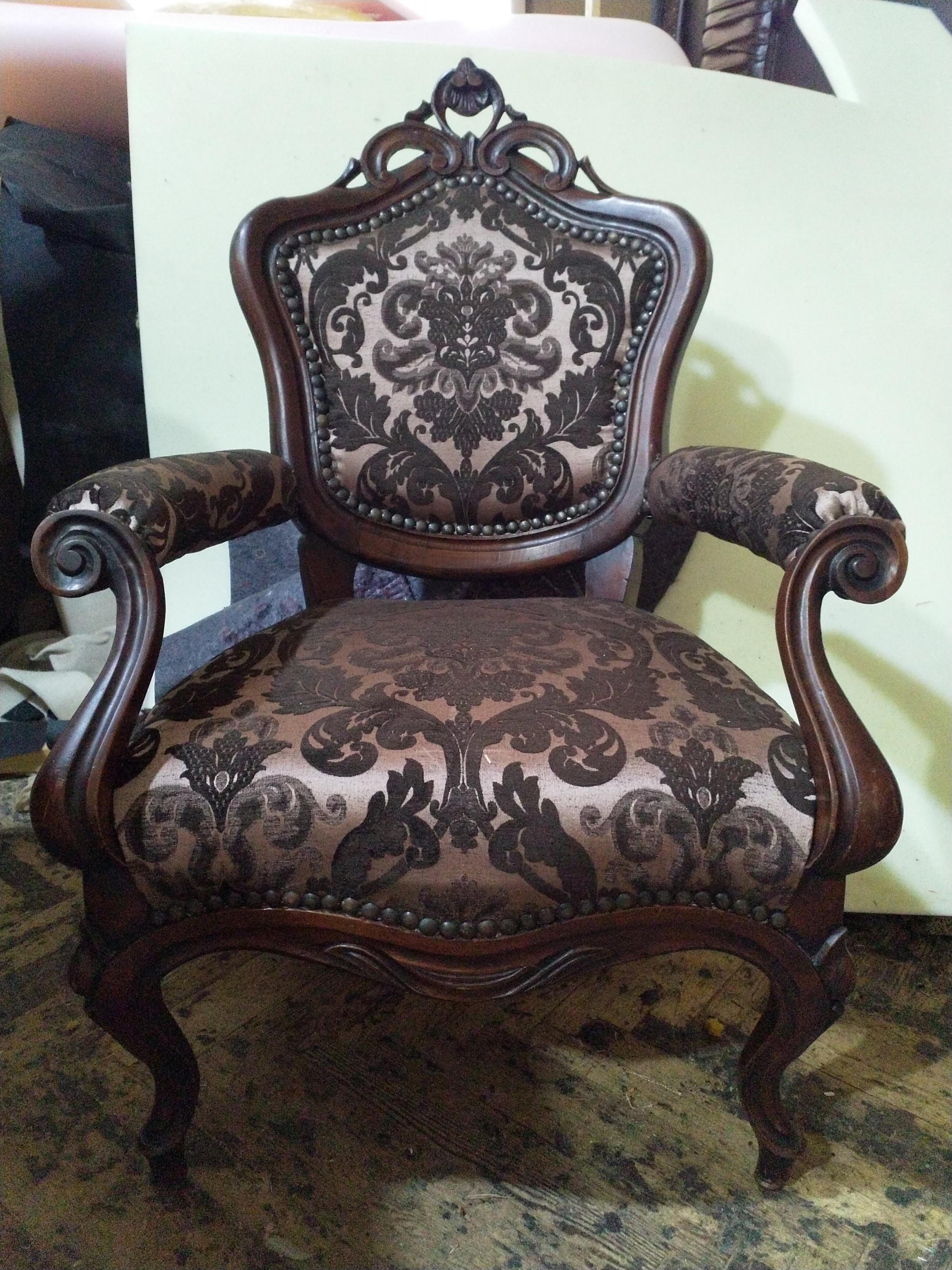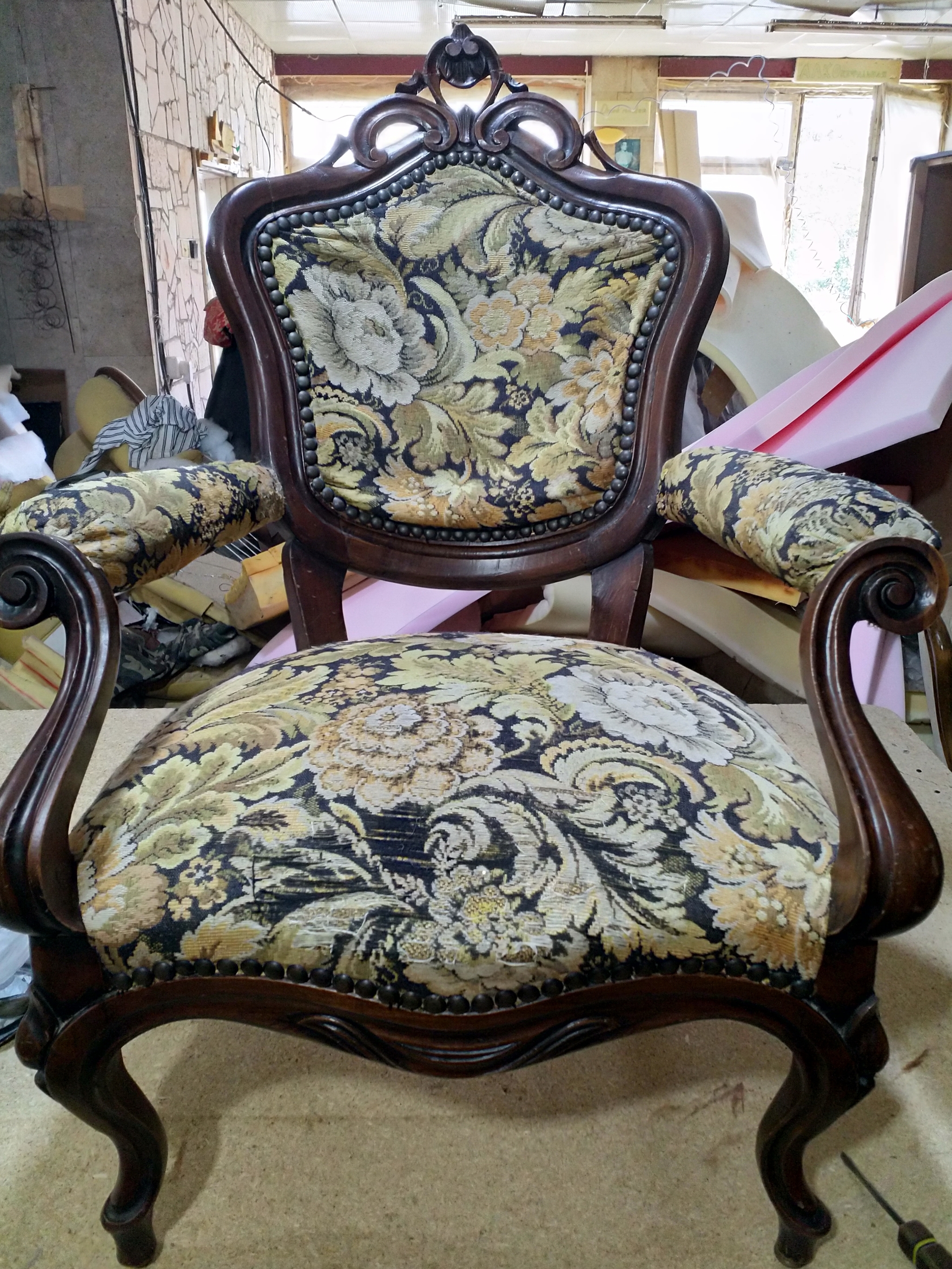 Снимаем мы квартиру. Мебель на кухне хозяйская, старая и потрепанная. И был там шикарный стул, прям как кресло, вот только без сидения - пуфик снизу поставлен. Новую мебель покупать дорого, да и люблю я рукоблудство всяческое) Так что купила простенькую шлифмашинку, ткань для обивки - и понеслось)