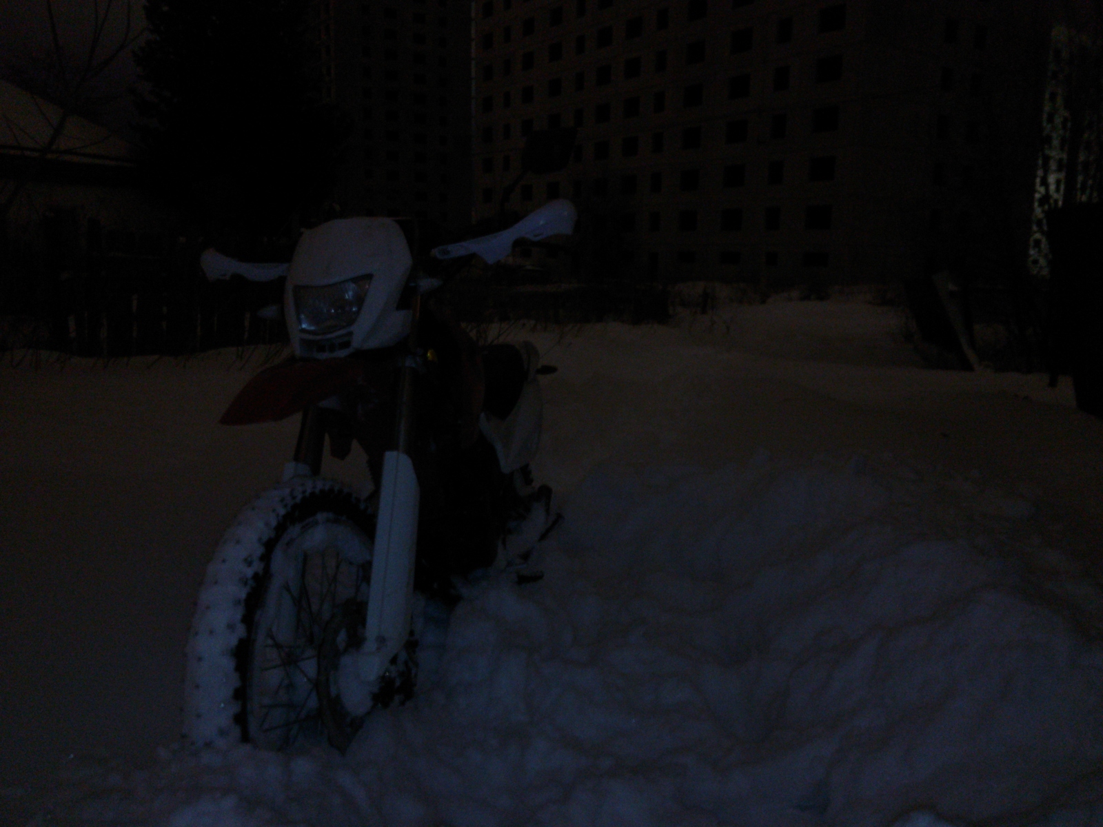 Лучше всего мот себя проявляет на укатанном снегу, зацеп отличный рвет только в путь), На льду неплохо, теперь можно тормозить и поворачивать, но из-за большой длинны "шипов" по прямой сложно ехать, зад валкий и качается из стороны в сторону, но если уменьшить длину шипов, в рыхлом снегу будет сложнее ехать. Мот едет до тех пор пока не сядет на "брюхо".