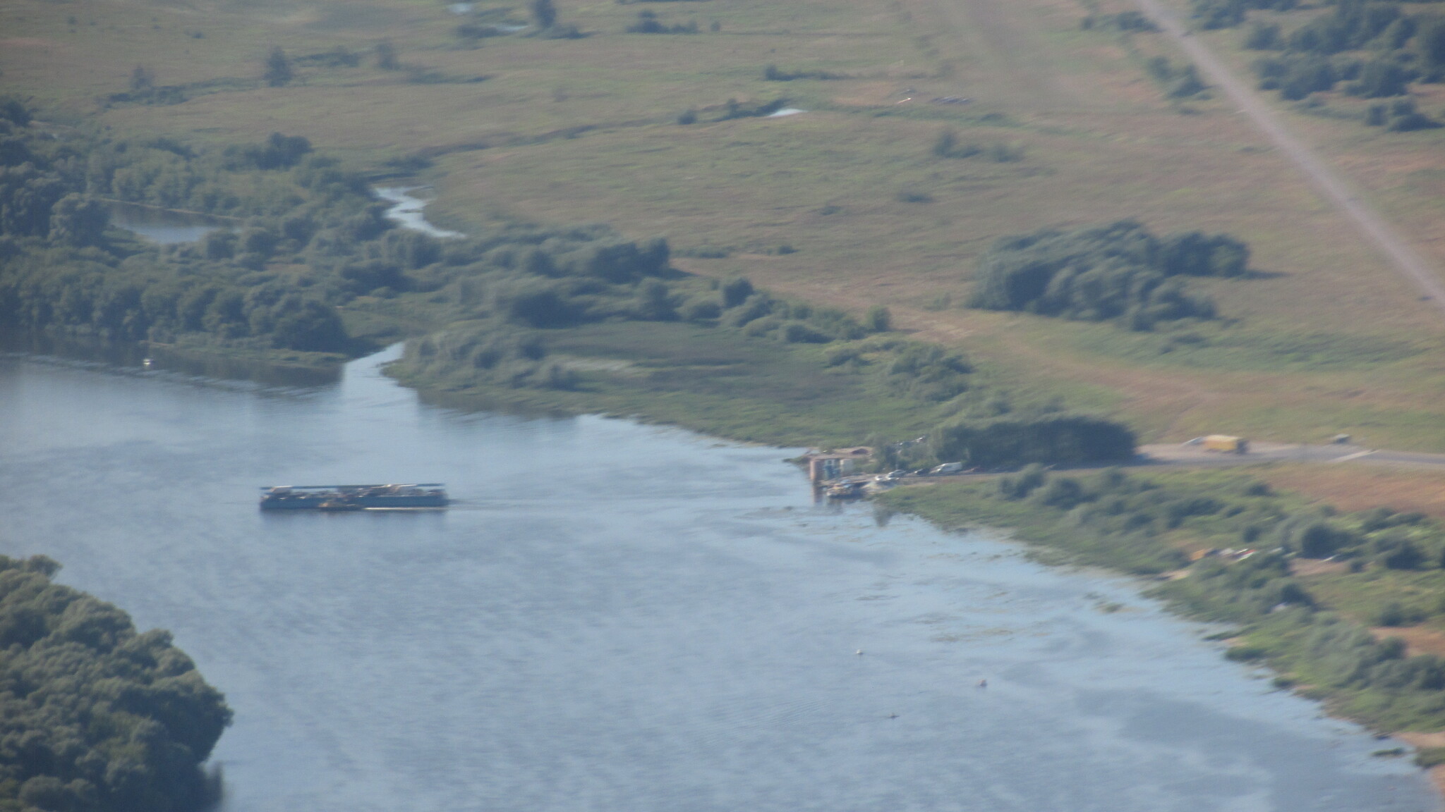 Для того, чтобы добраться до поселка Белоомут, где проходят полеты, пришлось прокатиться на пароме через Оку. Переживали, что на пароме могут не принимать карты. Но оказалось, что он совершенно бесплатный.