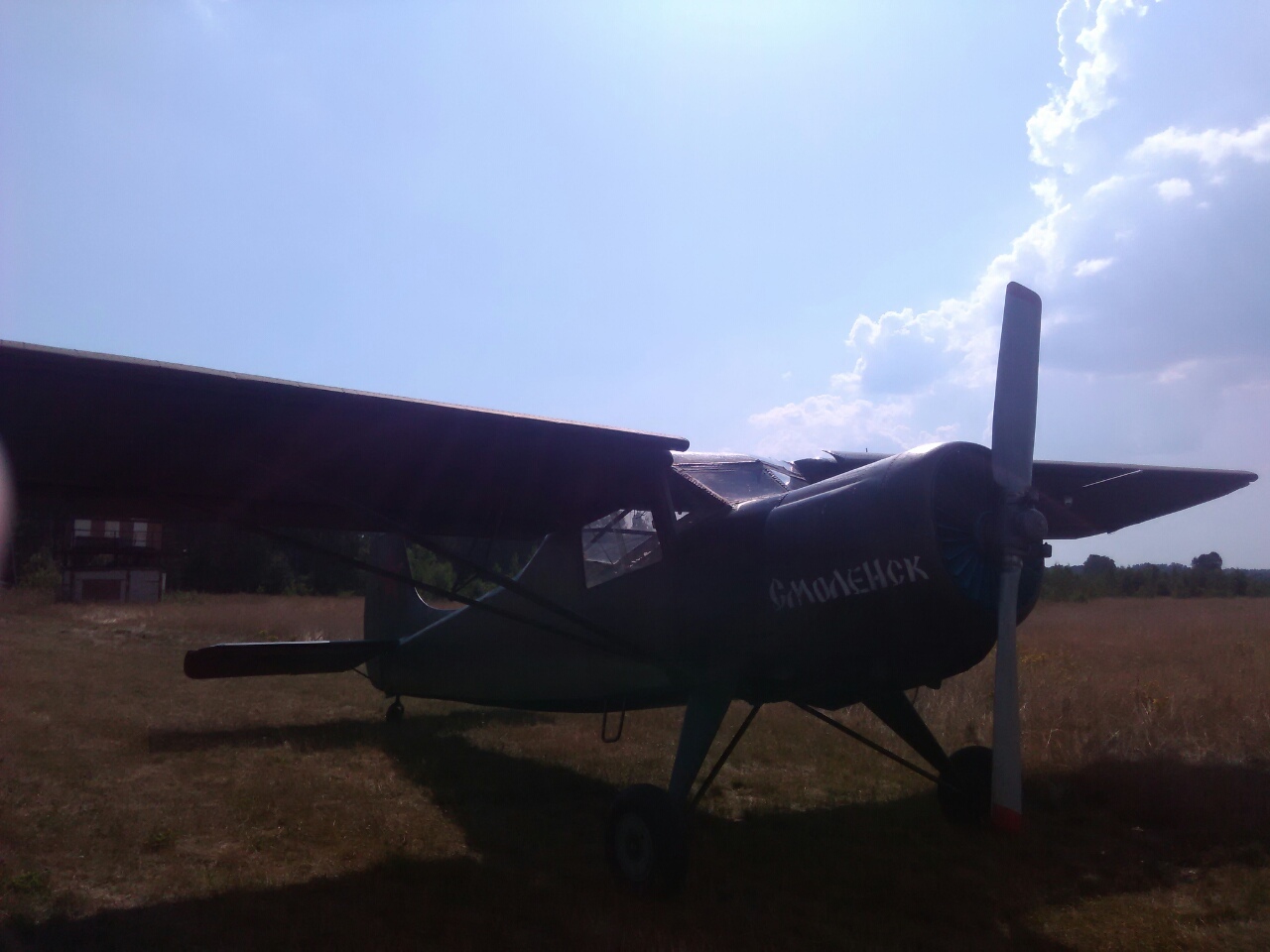 Короче приехали на точку сбора, там оказался заброшенный спортивный аэродром: поле, радио мачта, самолет. Чем-то все увиденное напомнило кадры из фильма "В бой идут одни старики".