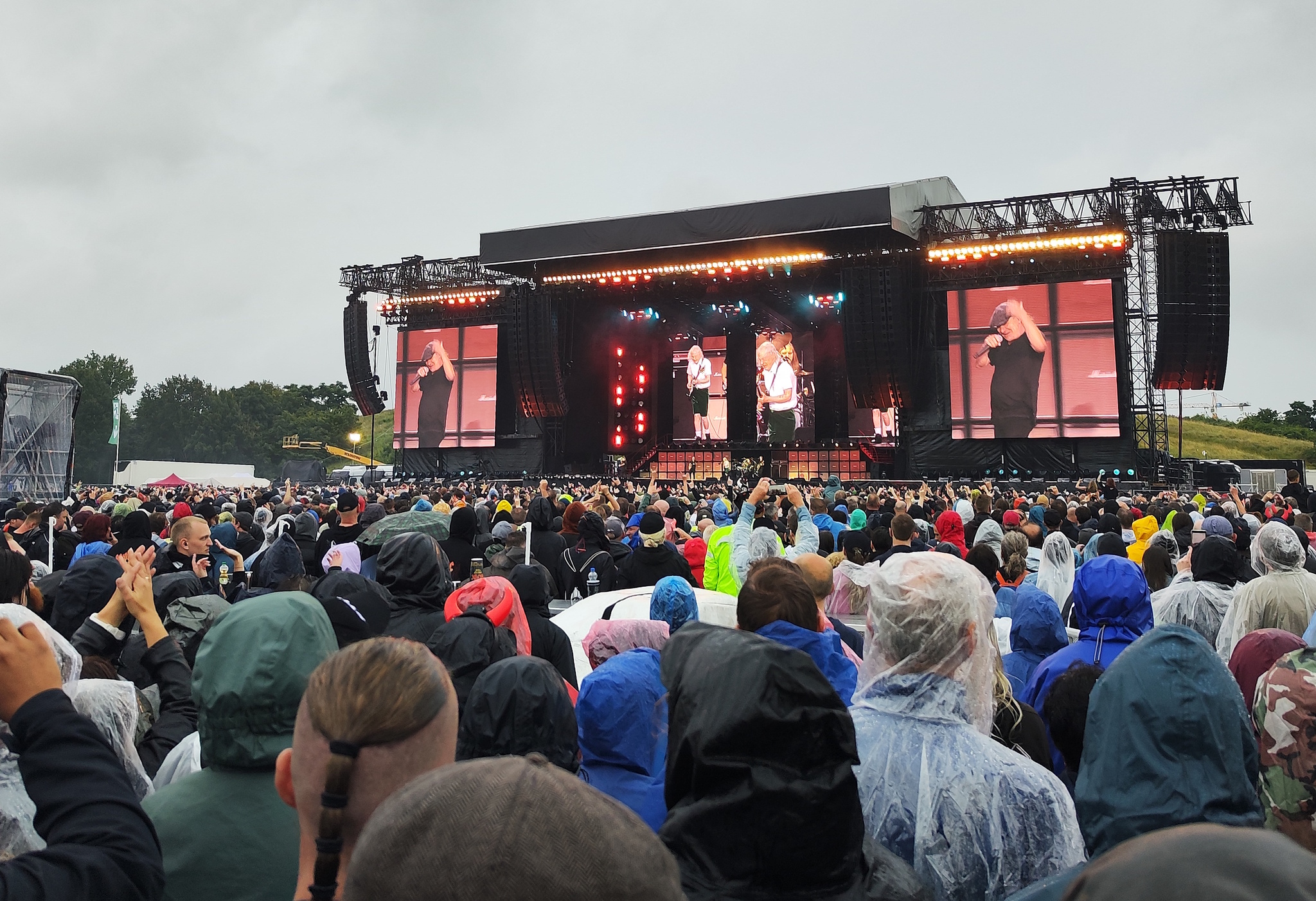 В общем концерт был под дождем (первый час), потом дождь стих... Мы были в мокрых дождевиках и с мокрыми зонтами, в промокшей обуви, но это только украшало атмосферу стойкости и упертости, сопротивления всему и вся и мы были на концерте живых Брайана Джонсона и Ангуса Янга! Их энергетика, музыка - это атомный взрыв в каждой душе!