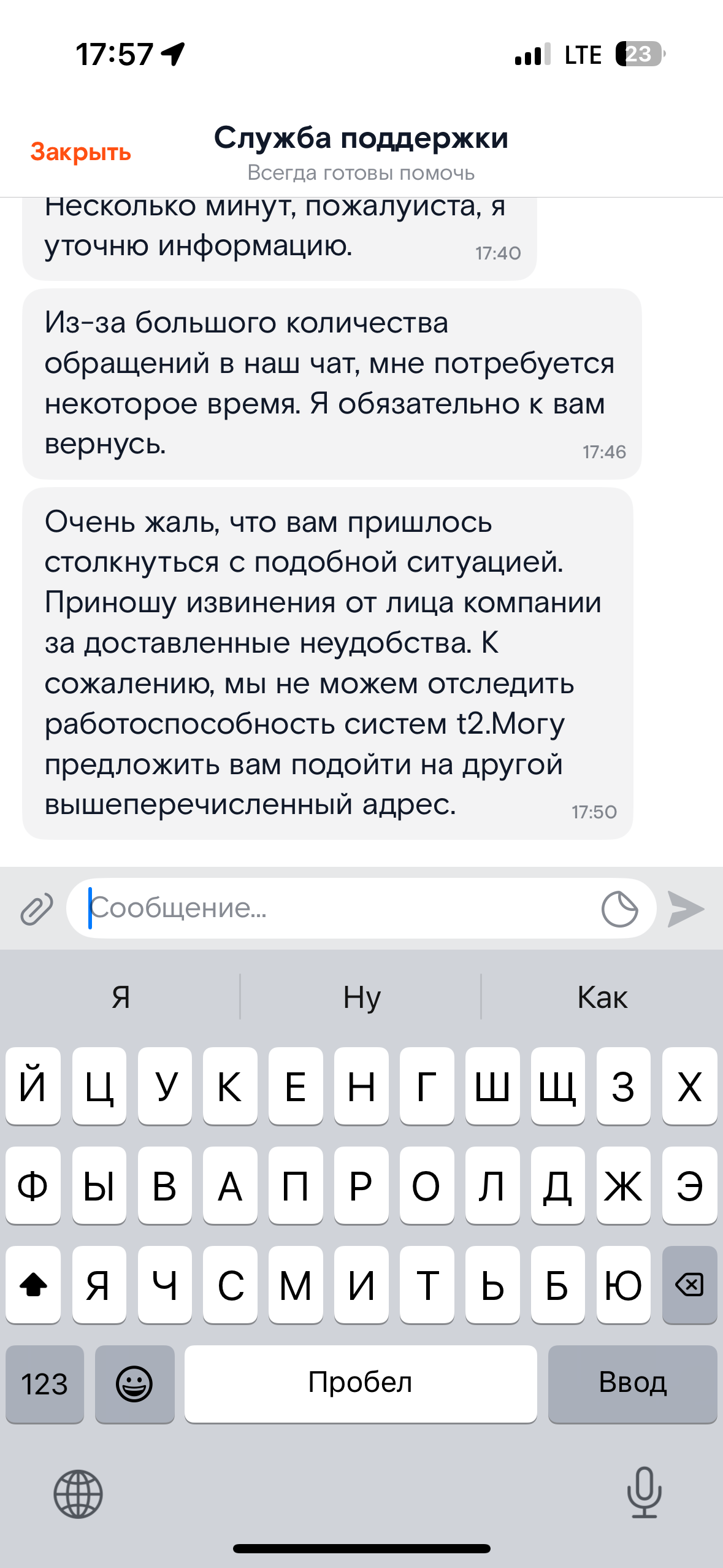В завершение сотрудник Т2 сказала, что эта проблема у них давно, сим-карты они не выдают. Счет за услугу естественно снимают по расписанию. Кайф, хорошо работаете!