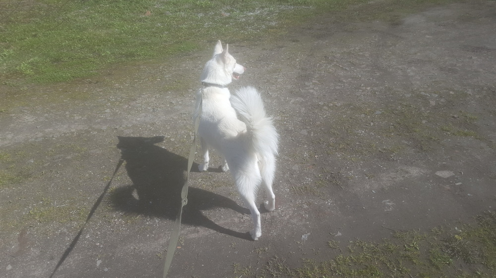 Она уже привыкла к ошейнику и поводку, а сегодня ей впервые примеряли полицейскую шлейку.