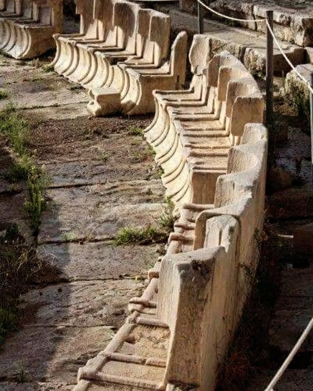 Первый ряд сидений театра Диониса в Афинах