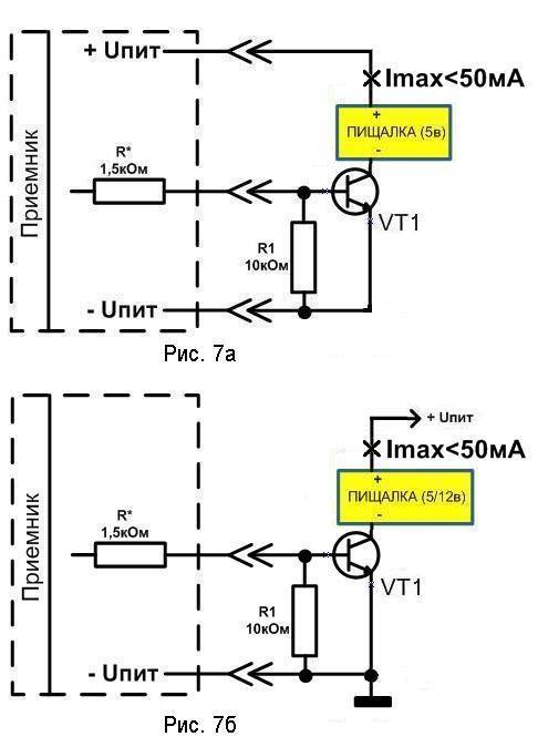Ну я бы попробовал так как человек выше схему с 1 транзистором запостил. Вход пищалки перенаправить на базу транзистора через резистор в килоом-два :)