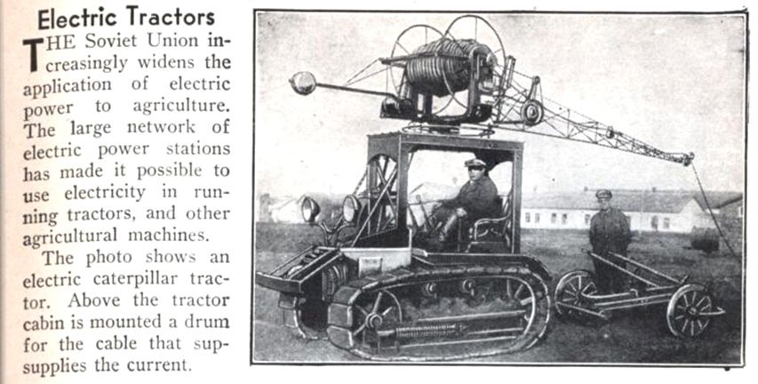 Фотография советского электротрактора ВИМЭ-2 из американского журнала Modern Mechanix за сентябрь 1936 г.