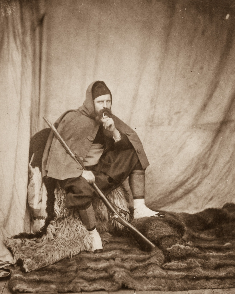 Сам фотограф Роджер Фентон, одетый как пехотинец-зуав и снятый его коллегой Маркусом Спарлингом. 1855 год