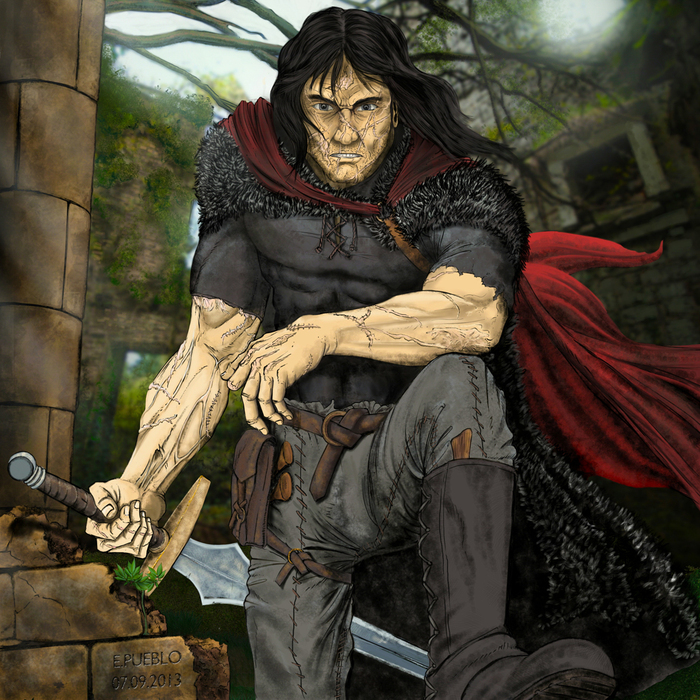 Северянин которому уже хорошо так за тридцать (скорее, под сорок). Все его могучее тело покрыто шрамами, но больше всего их на сердце. Всю жизнь он воевал, и с каждой новой победой становилось только хуже. Он разочаровался во всем и не верит ни во что. У него осталась только ненависть к шанка, убившим всего его родных, да тот, Другой, что сидит в тени и только ждет момента, чтобы вырваться и устроить кровавое побоище.
