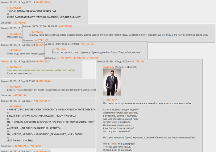 В тот же день принявший вызов анон завершил свою короткую пьесу, обобщающую шитпостинг в дотатредах, и выложил её на pastebin (для удобства чтения привожу текст, а не скриншот):
