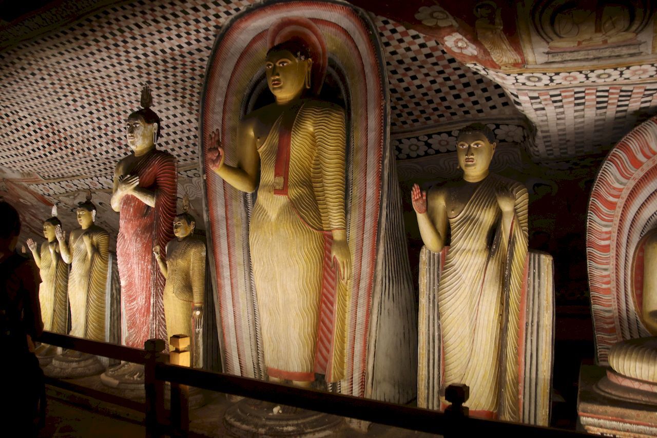 Всего там 5 основных пещер, в которых располагается 153 статуи Будды, из которых около половины покрыты золотом, из-за чего храм получил название Золотой.