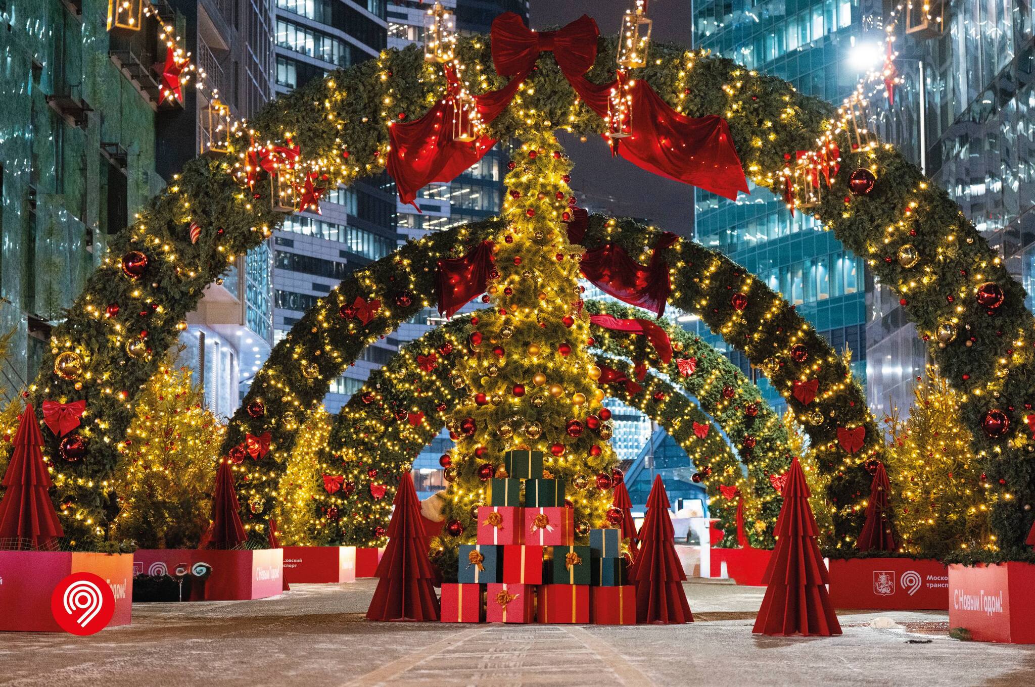 Пешеходное пространство у станции метро «Деловой центр» украсили к Новому году