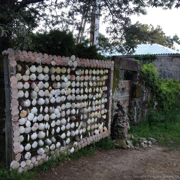 Первый подъем на выходе из Редонделы, на самом верху паломники привязывают раковины со своими именами: