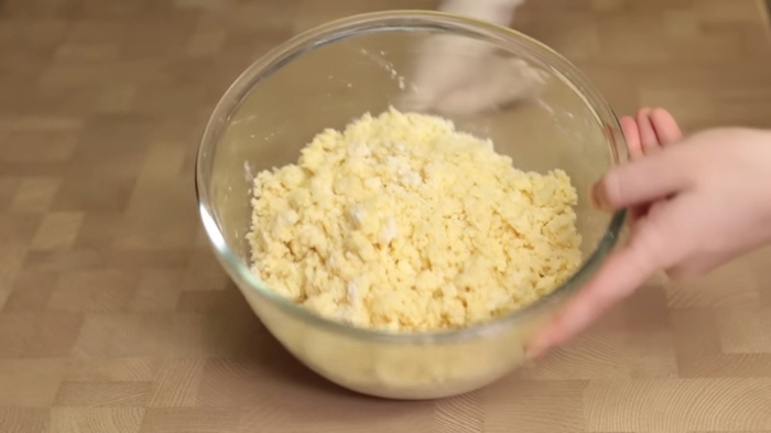 Готовое тесто завернуть в пищевую пленку и на 20-30 мин. Убрать в холодильник.