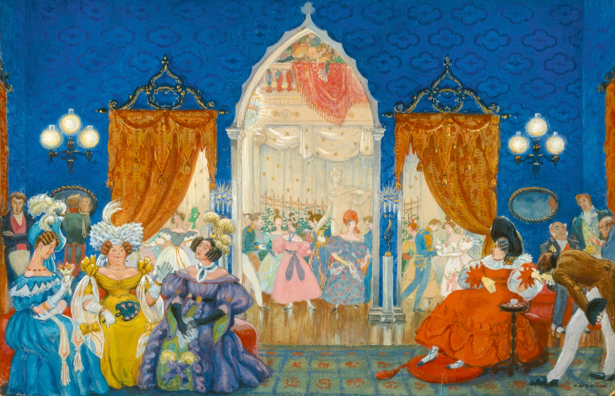 В 1907 году Добужинский дебютировал как театральный художник. По приглашению К. С. Станиславского с 1909 года он сотрудничает с Московским Художественным театром. Первая же постановка — «Месяц в деревне» И. С. Тургенева — вызвала большой интерес у публики.
