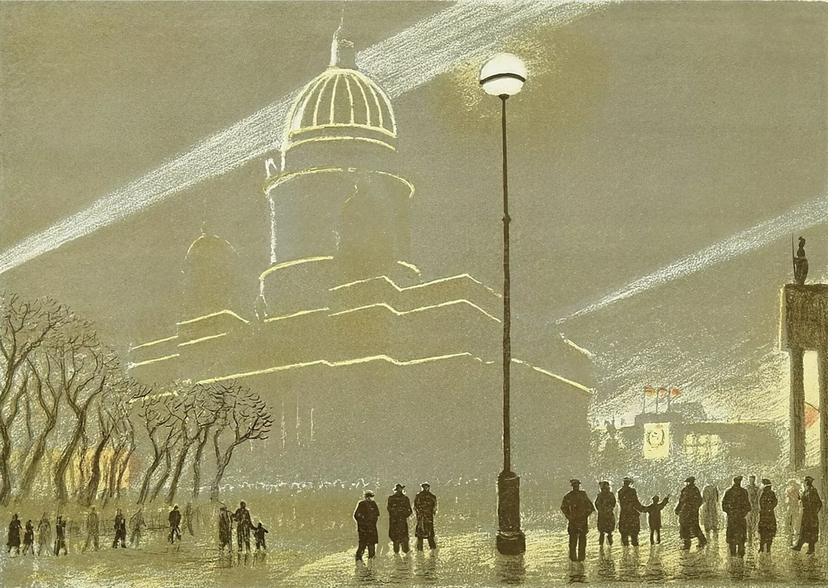 Владимир Гринберг, «Ночь. Площадь Воровского (Исаакиевская)», 1936 г. Государственный Русский музей.