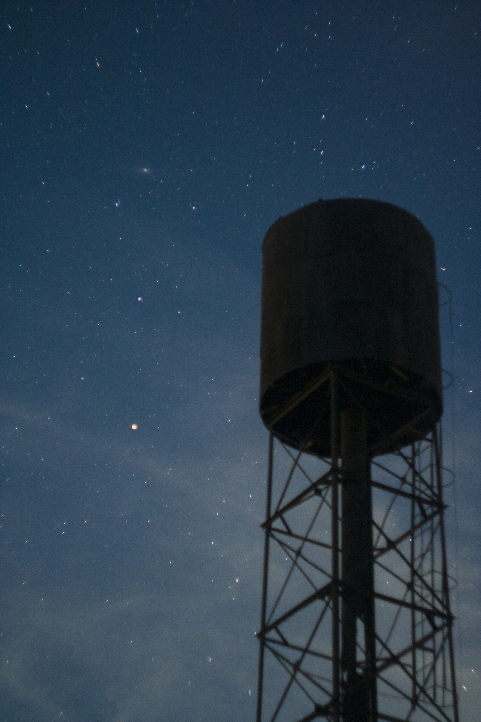 На первом снимке даже удалось поймать туманность Андромеды (выше/левее башни)