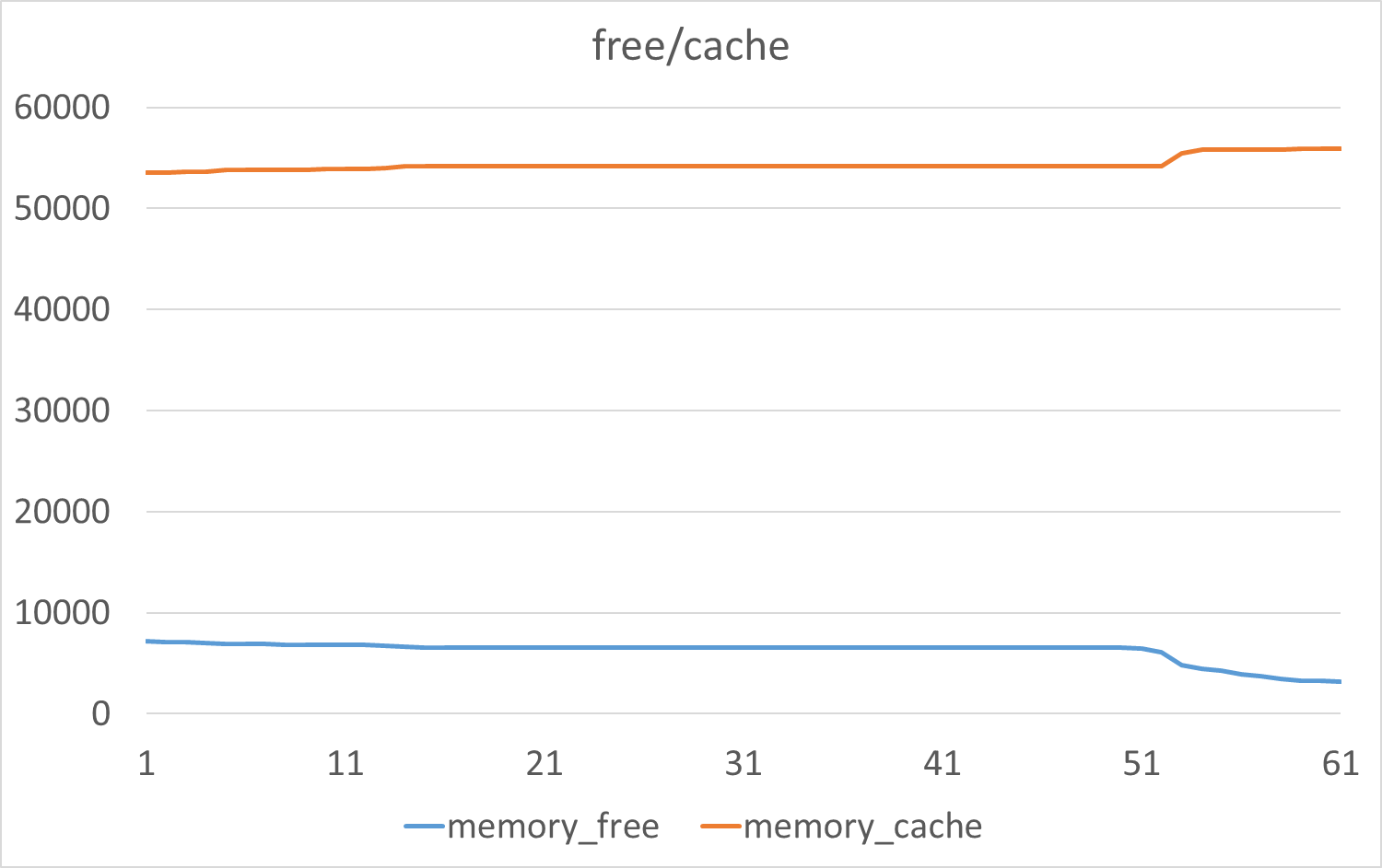 Отрицательная корреляция: Рост значений free сопровождается снижением значений cache.