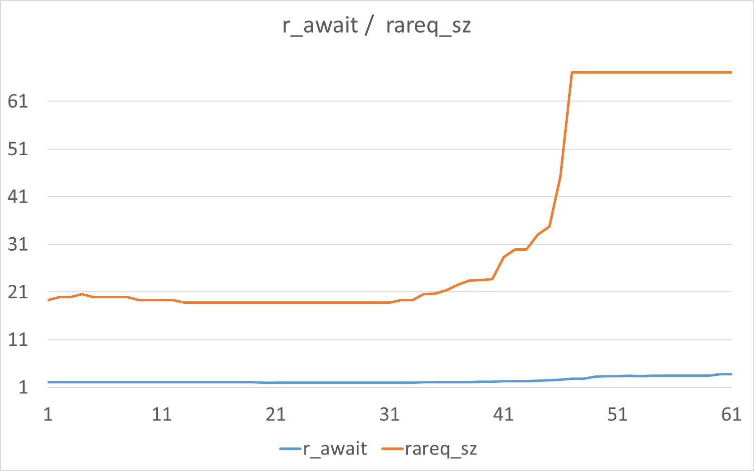 1. Увеличение времени чтения (r_await): с 2 мс до 3.7 мс — рост на 80%.